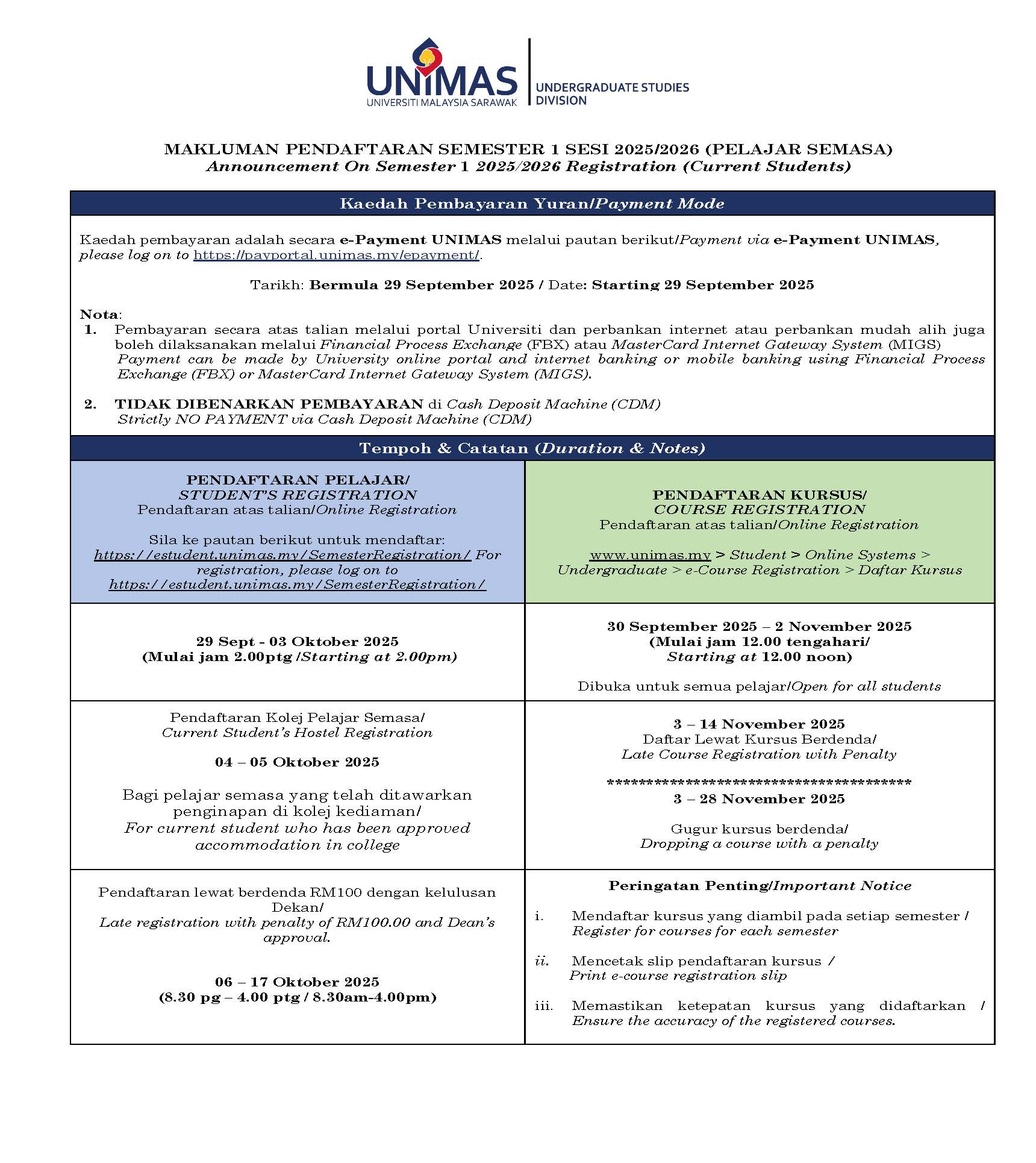♦ Notis Daftar Pelajar Semasa Sem 1 2025_2026